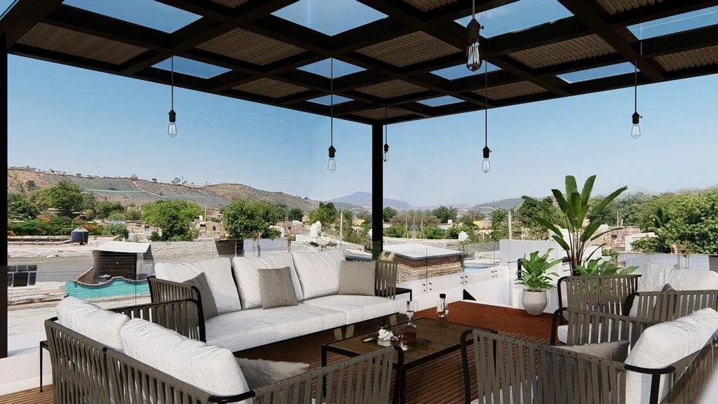 Crear un propio patio que permita abrir las áreas privadas es agradecido en un lugar con temperaturas que rondan los 30° y 38°C, con algunas temporadas de lluvia en julio y agosto, un clima semi seco.
