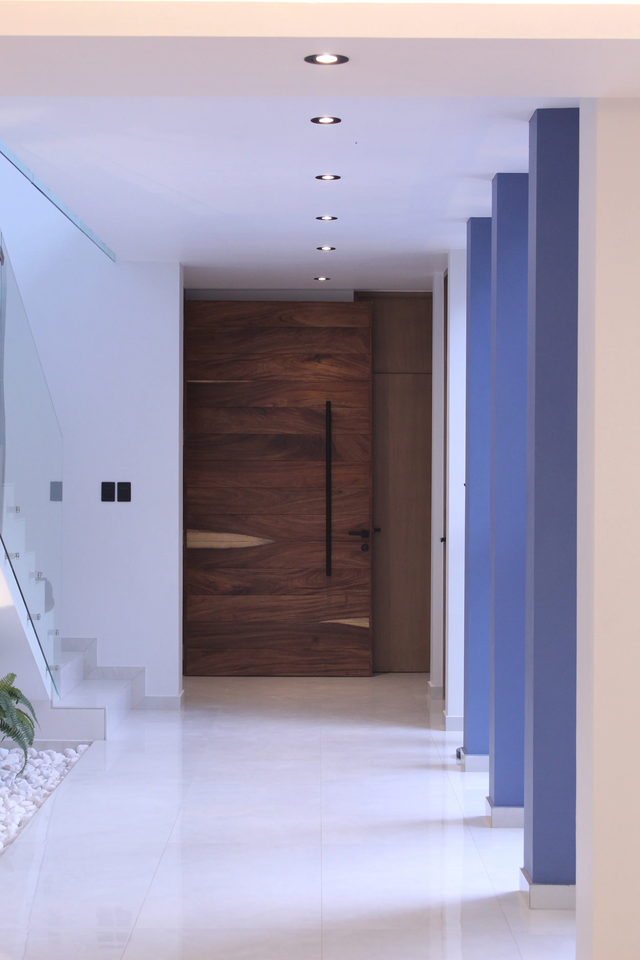 El proyecto pasó por muchos cambios conforme iba avanzando, agregando 2 recámaras más (una en planta baja y replica en planta alta) con su propio baño cada una, eliminando una alberca proyectada en el patio central. Los propietarios solicitaron ese rumbo con la finalidad de albergar familia próxima. Las áreas sociales se ampliaron al dejar una terraza en el patio central, conectando directamente con la cocina, el comedor y la estancia.