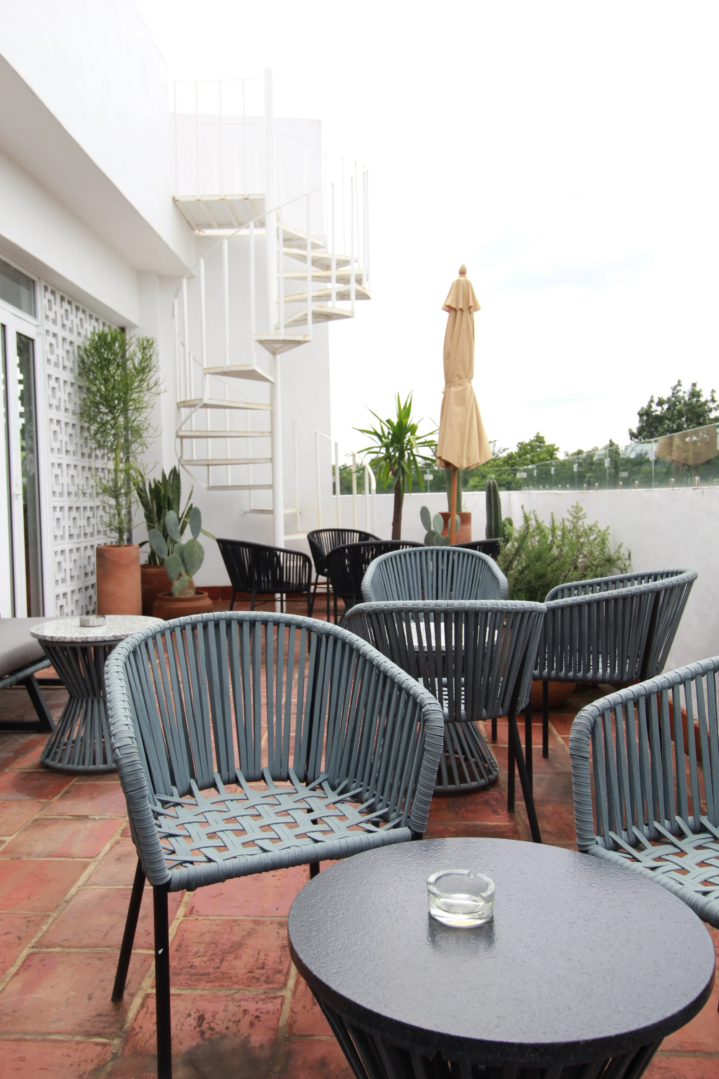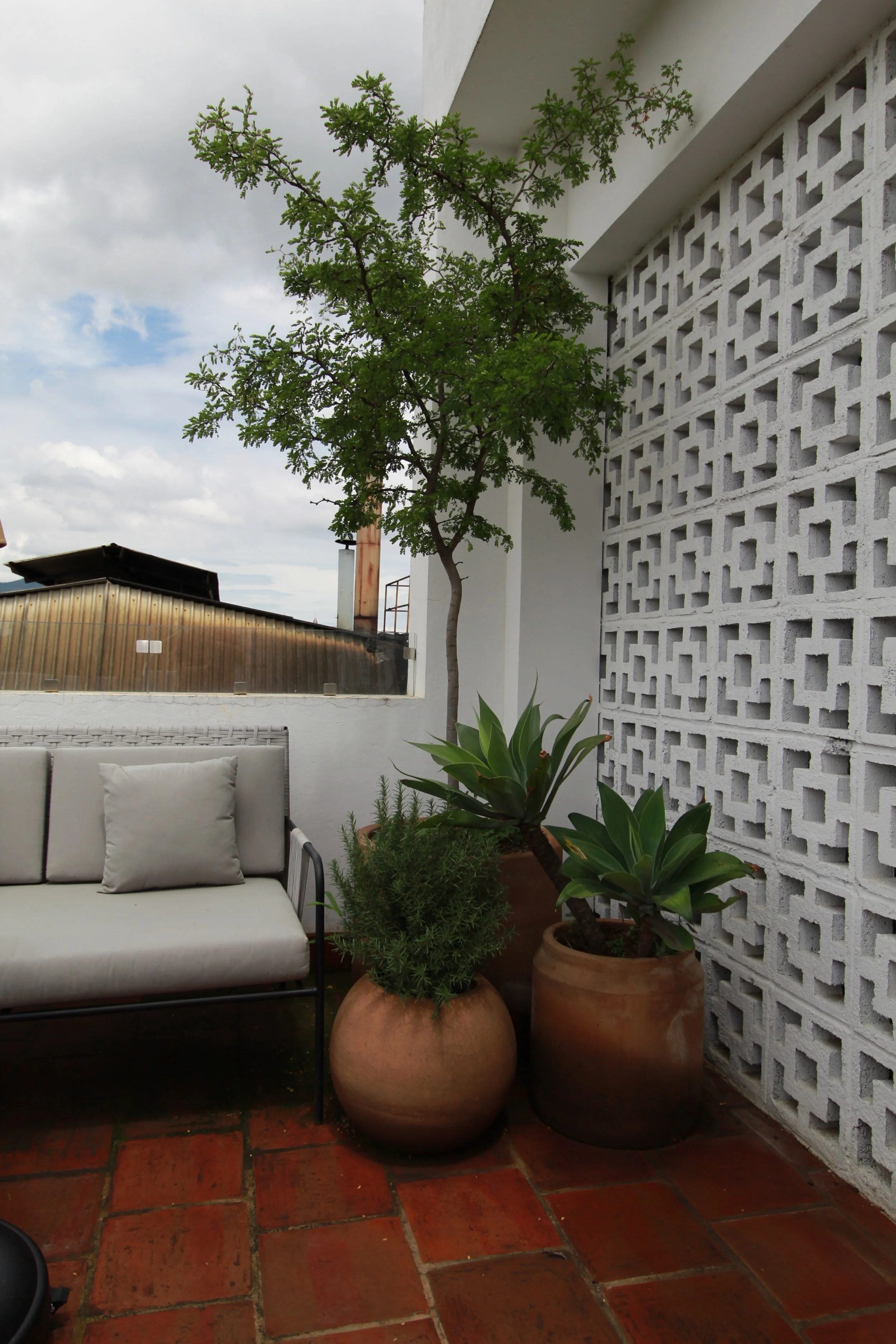 Con una doble altura que nos beneficia para la cava, logra auxiliarnos para elevar el bar ubicándolo en un 3er nivel, apoyando una escalera en el exterior para un mirador contemplativo, donde se puede observar parte del municipio, algunas de sus viejas haciendas y el paisaje agavero.